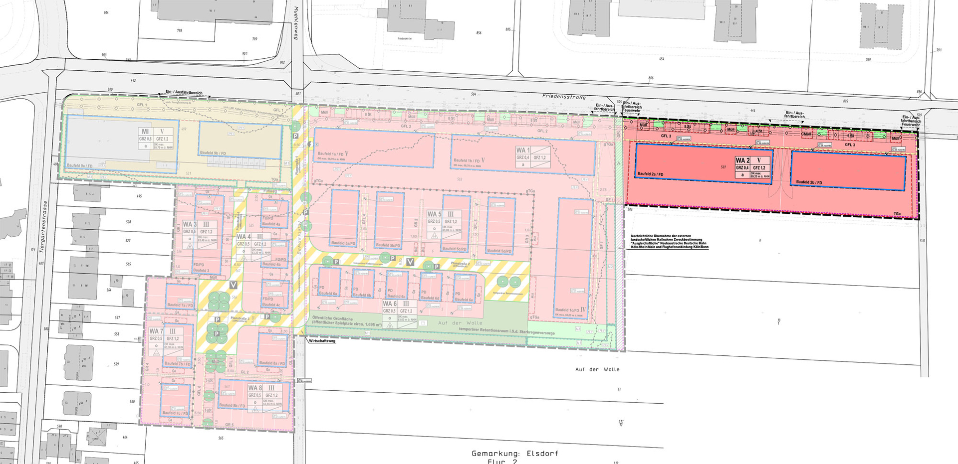 Zwei Gebäude mit unterschiedlichem Nutzerprofil und einer ganzheitlichen Gestaltung bilden das Wohnprojekt in der Friedensstraße. Gebäude 4 beherbergt neben 42 geförderten Wohnungen auch eine Wohngruppe mit acht Wohnplätzen. Gebäude 5 ist für 37 Eigentumswohnungen konzipiert.