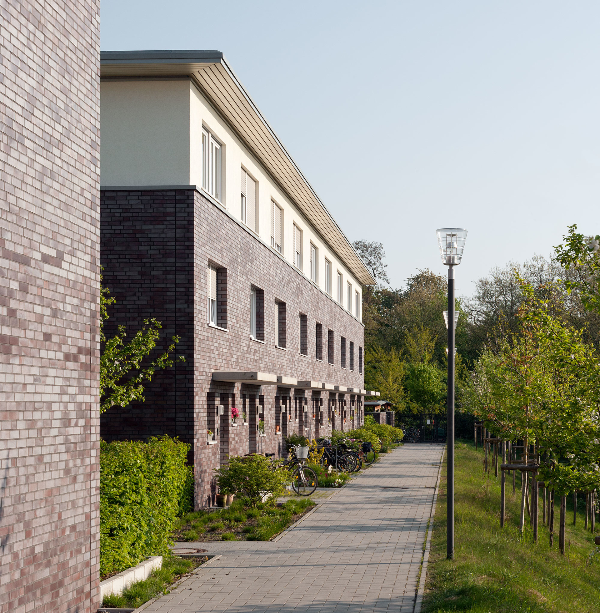 Eine Besonderheit ist der Verzicht auf eine Tiefgarage; die notwendigen Stellplätze sind in der Carportanlage entlang der Nordgrenze untergebracht.